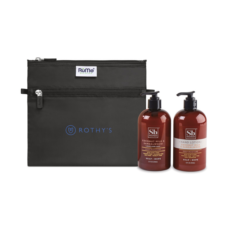 - Our RuMe Recycled Pouch is paired with one Soapbox® liquid hand soap and one Soapbox™ hand lotion for a duo that creates a unique and thoughtful gift that will be appreciated every day