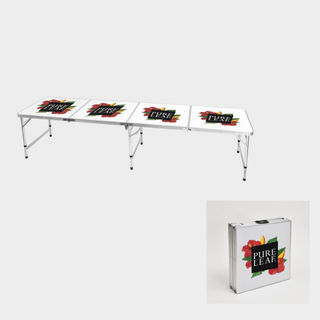 For your next outdoor corporate event, get this convenient folding 8′ foot table with your brand or theme.