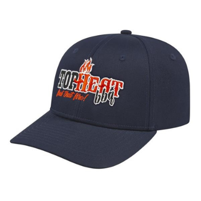 This original full fabric cap features a modified flat bill and a 3-part comfort fit sweatband. The cap features a poly/cotton blend fabric with an adjustable plastic snap tab closure.