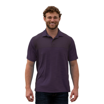 A mix of tonal textures adds visual interest to this sporty performance polo. 100% polyester, 4 ½ oz., heather interlock body, 92% polyester/8% spandex heather jersey front and back yoke block, moisture-wicking and UV properties, self-goods collar with collar band.